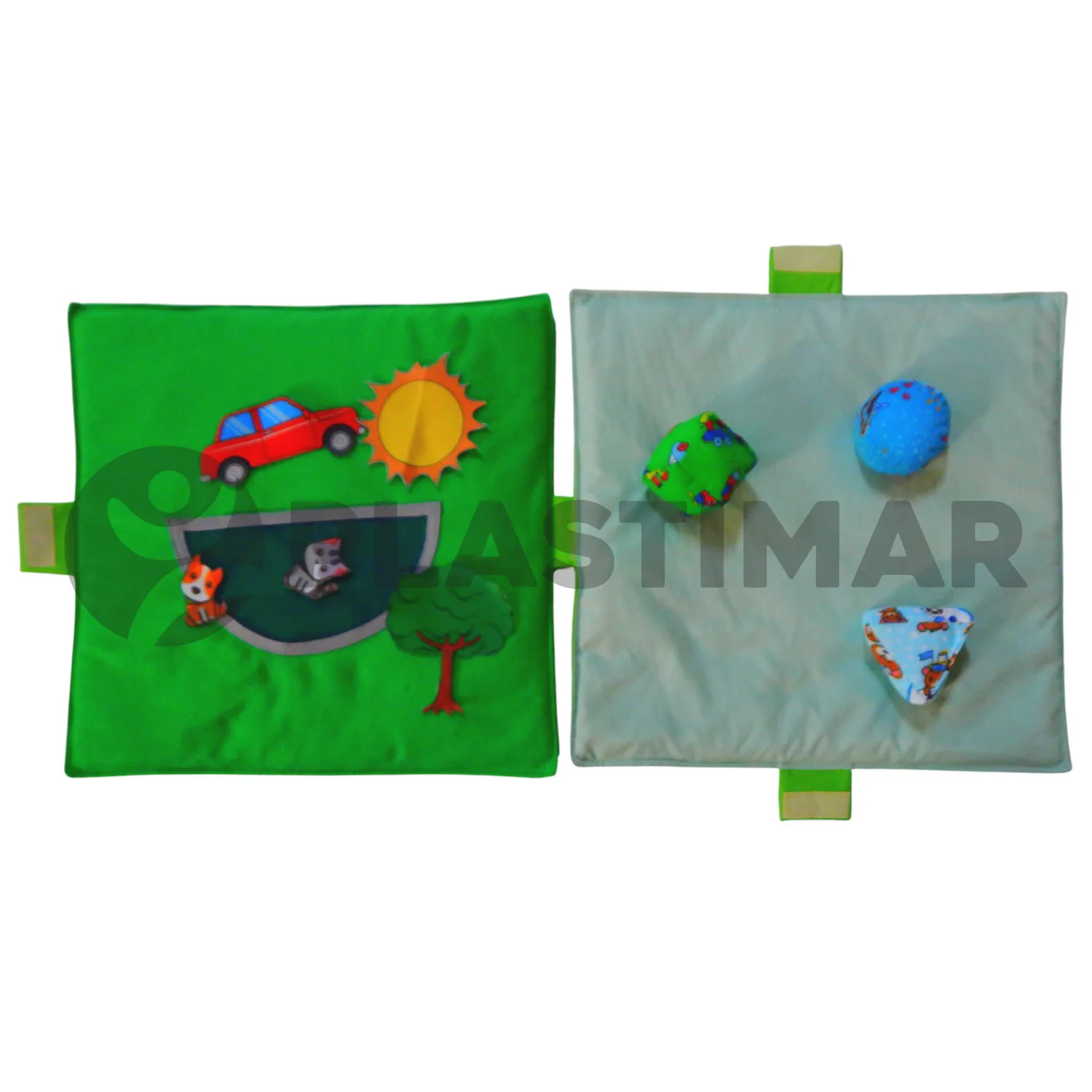 Cada módulo está confeccionado en telas de diferentes colores y texturas, e incorpora variadas propuestas de juego y descubrimiento como espejos, sonidos, objetos ocultos, distintas texturas y diversos sistemas de amarre. Favorece el desarrollo sensorial, la motricidad fina, la curiosidad y la interacción, siendo ideal para espacios educativos, terapéuticos y de estimulación temprana.