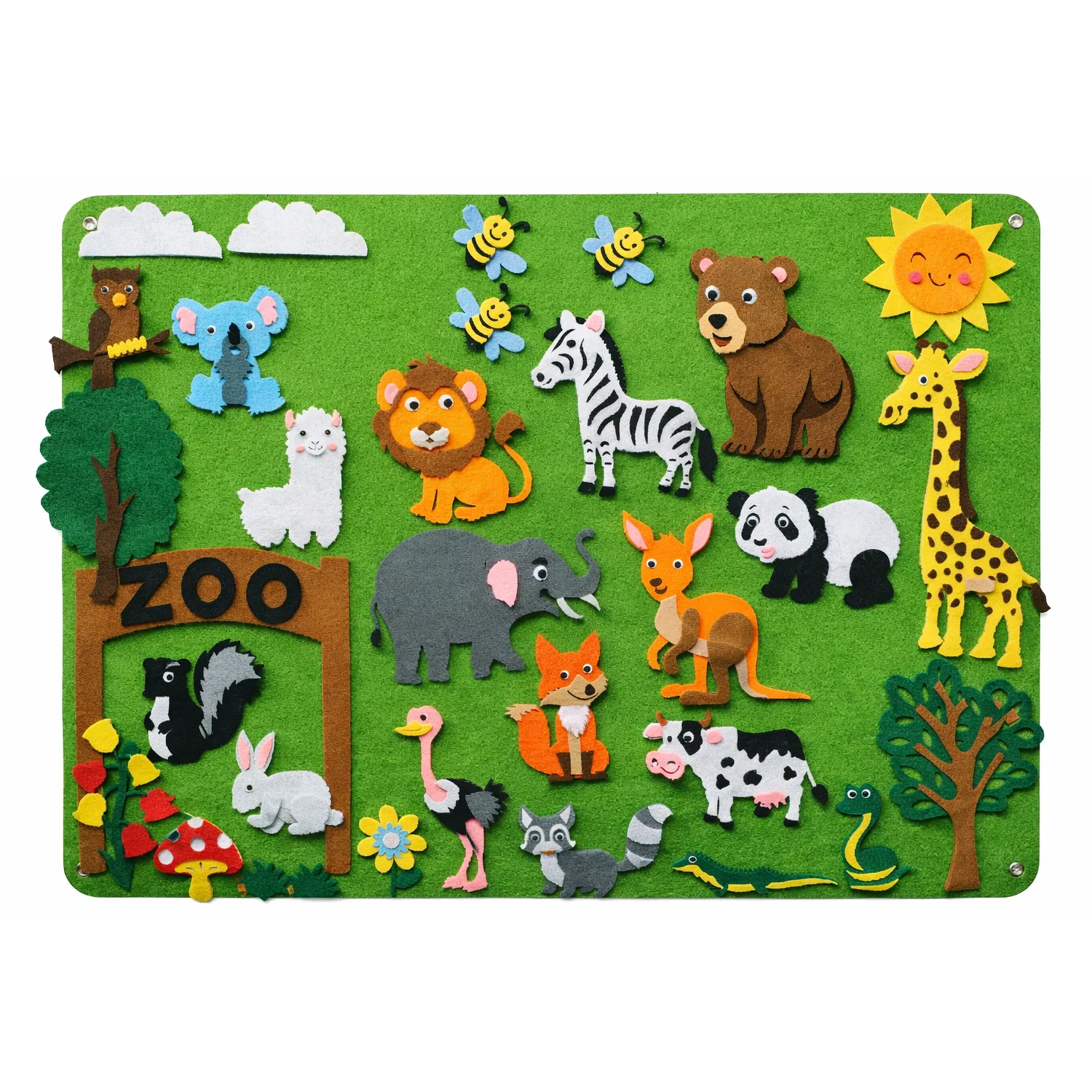 Material didáctico orientado al desarrollo de la creatividad y la imaginación mediante la composición de escenas con figuras de fieltro reutilizables. Permite montar y desmontar elementos sobre la superficie, favoreciendo la construcción libre o guiada en contextos educativos y recreativos.